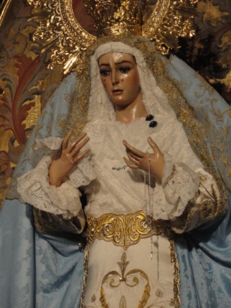 La imagen de Ntra. Sra. De la Esperanza ya luce, por primera vez, un manto azul para celebrar la Inmaculada Concepcin de Mara.