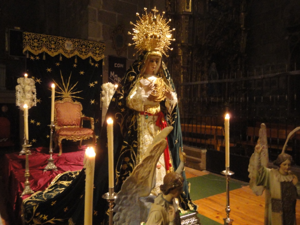 Han sido das intensos en San Juan. El sbado 15, desde primera hora de la maana, los miembros de la Asociacin Cultural Salud y Esperanza de vila recorrieron las calles de vila recogiendo alimentos para los mas necesitados. La colaboracin de los abulenses fue extraordinaria. Durante todo el da no paraban de acercarse personas con bolsas de alimentos. A las ocho de la tarde, cuando finaliz la caravana, se haban recogido aproximadamente unos 250 kilos. A continuacin se realiz en la Iglesia la Celebracin Penitencial. El domingo por la maana comenzaba el Triduo en honor a Ntra. Sra. de la Esperanza con la Ofrenda Floral de autoridades y cofradas. La Junta de Gobierno, Camaristas y Braceros no realizaron este ao ofrenda floral, sino que destinaron el dinero a comprar alimentos, que se sumaron a los que ya se haban recaudado el da anterior, todos ellos depositados en la Capilla, a los pies de Jess de la Salud, que con su tnica morada se encontraba en el altar de la Virgen. Ntra. Sra. de la Esperanza se encontraba en el presbiterio de la Iglesia, sobre su nueva peana, que fue estrenada en esta ocasin. Con la saya y manto de 1954 y pechern dorado, se encontraba escoltada por dos ngeles, pertenecientes a la Parroquia, que la Hermandad ha recuperado. El manto de la Virgen se extenda por la escalera que a sus espaldas se encontraba, y que llevaba a un trono, colocado delante del palio. La Esperanza bajaba de su trono en el Cielo para acercarse a sus fieles. Tras la Misa tuvo lugar la emotiva entrega de medallas a los nuevos hermanos, entre ellos muchos nios este ao. El lunes se celebr la Santa Misa por los Difuntos de la Hermandad. Durante los tres das se podan adquirir los calendarios de 2013 con buensimas fotos de nuestros Titulares, y los Dvds del pasado Lunes Santo, adems de las pulseras de la Hermandad. Ya el 18, martes, festividad de Ntra. Sra. de la Esperanza, un ao ms la Escolana del Colegio Diocesano Pablo VI volvi a deleitar a todos los asistentes con sus voces, que junto con el incienso crearon el ambiente perfecto para el posterior besamanos, tras la entrega de obsequios a distintos hermanos. El besamanos fue uno de los ms multitudinarios que se recuerda. Durante el Triduo los propios hermanos tambin llevaron alimentos a la Capilla, que ayer se entregaron a Critas Parroquial, alcanzando casi los 500 kilos. Muchas gracias a todos por tanta colaboracin! Os deseamos a todos Feliz Navidad!