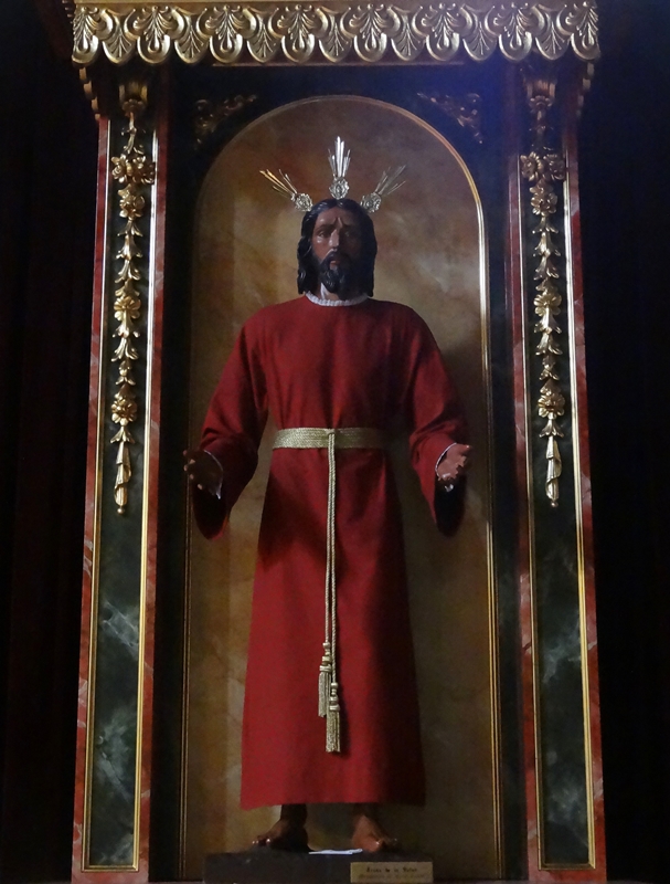 Tras finalizar los actos de bendicin del nuevo retablo de Ntro. Padre Jess de la Salud en la Capilla de la Hermandad se ha procedido a vestirle con su tnica granate y a colocarle unas nuevas potencias para lucir en dicho retablo.