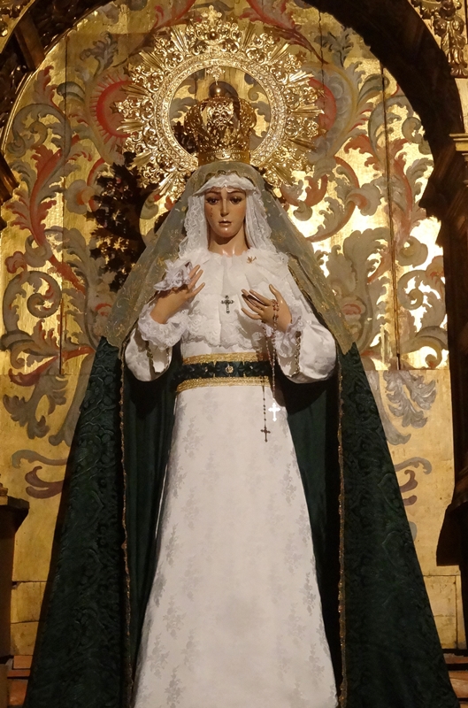 Desde hoy Ntra. Sra. de la Esperanza est ataviada con su manto verde oscuro adamascado y con saya de brocado blanco, estrenando un nuevo tocado de encaje. Por su parte, Ntro. Padre Jess de la Salud luce la tnica de la Bendicin. Adems, la Capilla cuenta ya con su nueva iluminacin tras la remodelacin y la inclusin del nuevo retablo.