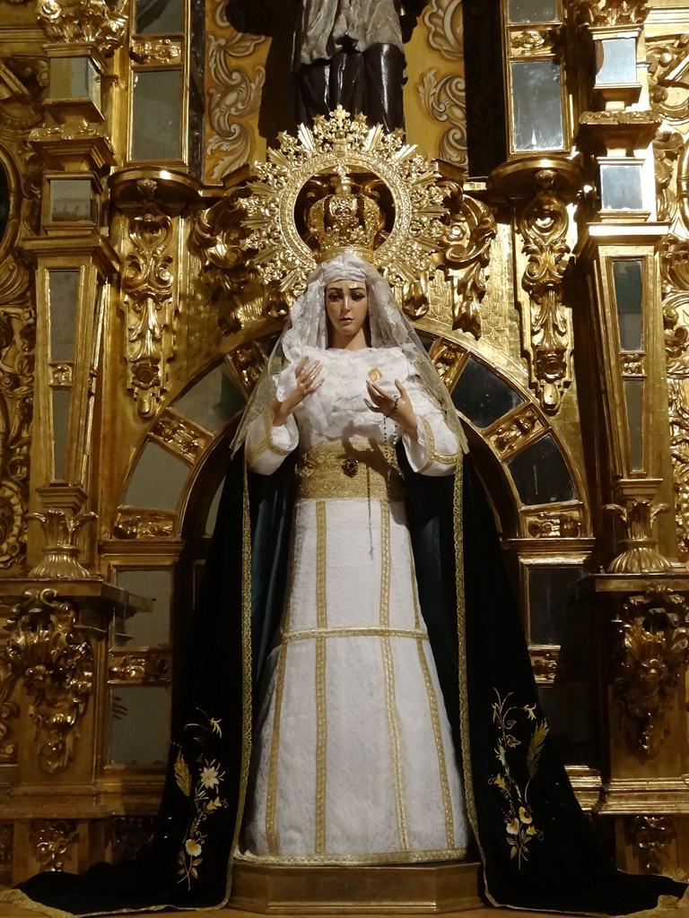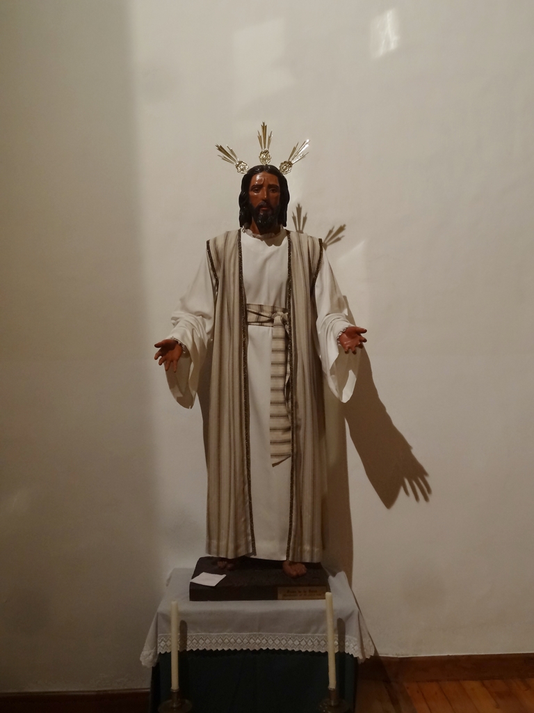 Ntro. Padre Jess de la Salud, ante la festividad del Bautismo del Seor, se encuentra vestido con tnica blanca con chaleco y fajn y Ntra. Sra. de la Esperanza luce uno de sus mantos verdes bordado y una de sus sayas blancas de encaje.